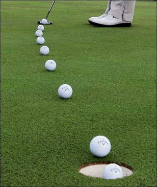 Laissez pendre des clefs attachées à vos mains durant votre mouvement du ''putting''. Si les clefs se promennent durant le mouvement, la vistesse de votre mouvement n'est pas synchronisée avec la vitesse de la tige du bâton.